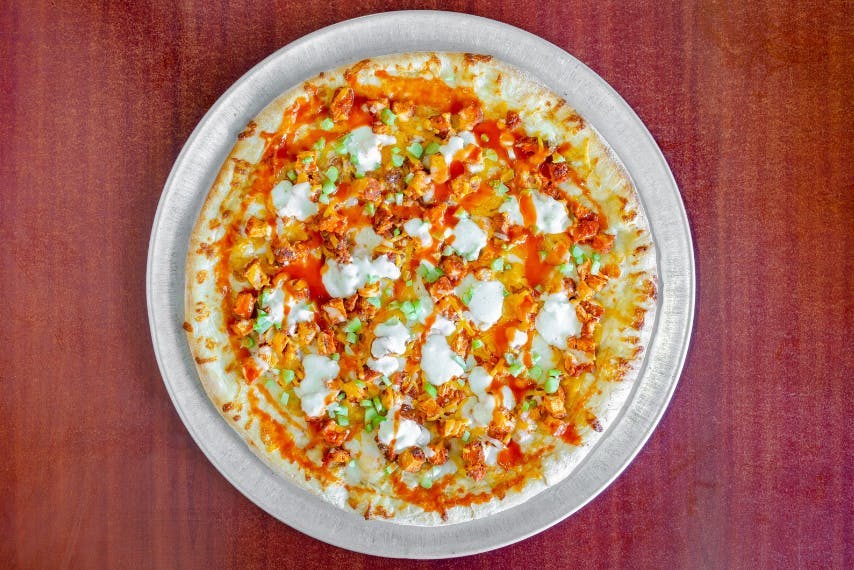 Bacon, sausage, pepperoni, ham, onions, peppers, mushrooms & olives.