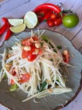 Fresh green papaya tossed with tomato, green beans, lime juice, and peanut.