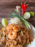 Spicy. Sautéed thin rice noodle with shrimp, egg, onion, basil, garlic, young peppercorn, and bell pepper with spicy brown sauce.