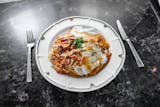 With ricotta, topped with melted mozzarella, served in our tomato sauce (meat based).