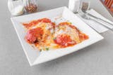 Breaded chicken and homemade pasta tossed in marinara sauce and covered with cheese