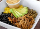 Premium pulled pork, lime-cilantro rice, avocado, black beans, corn, caramelized onions, served with mild chipotle sauce.