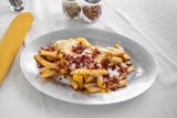 Sweet Italian sausage, bacon bits, red onion and mozzarella cheese.