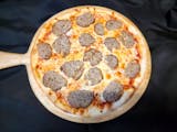 Tomato sauce, mozzarella, meatballs, sausage, pepperoni, ham, and bacon.