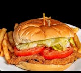 Breaded fried chicken cutlet topped with lettuce, tomato, mayo or your choice of sauce, served on your choice of bread.