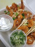 Full size grilled or fried shrimp with lettuce, onions, and cucumber.