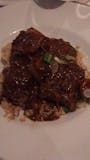 Pan seared tips of filet mignon sauteed with porcini mushroom, peas in light brandy cream sauce.