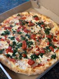 Broccoli, ricotta & roasted red peppers. White or red, garlic on request.