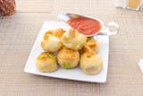 A classic snack, our garlic knots are strips of pizza dough tied in a knot, baked, and then topped with melted butter, garlic, and parsley.