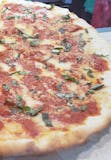 Thin crust square pie with marinara, basil, fresh mozzarella & parmigiano cheese.