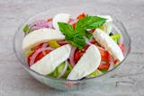 Fresh mozzarella, romaine lettuce, tomato, onions, cucumbers, olives & roasted peppers.