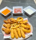 Tossed in hot sauce, BBQ sauce, or mild sauce & served with side of blue cheese or ranch.