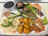 2 steaks, 2 chicken, 5 shrimps & roasted jalapenos