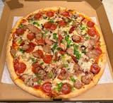 Pepperoni, Sausage, Mushrooms, Bell Peppers, and Onions.