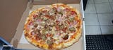 Ham, pepperoni, sausage, mushrooms, green peppers, onions, mozzarella cheese & sauce on the side.
