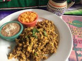 Fried tortilla chips cooked in red or green salsa with 2 eggs, topped with cilantro, onions, sour cream and cheese.
