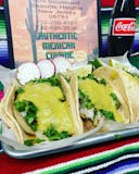 Three tacos per order. Topped with lettuce, tomato, Monterey cheese, sour cream.
