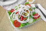 Fresh lettuce, tomatoes, green peppers, red onions, cucumbers, and black olives. Supersized for your party.
