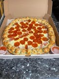 Pepperoni, sausage, green peppers, mushrooms & onions.