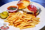 Layers of lightly breaded eggplant, topped with mozzarella and marinara sauce. Served over spaghetti.