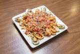Shrimp, calamari, mussels, & clams in marinara sauce over linguine.