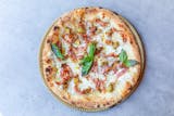 Tomato sauce, heavy cream, Parmigiano Reggiano, mozzarella, bacon.