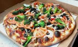 Sausage, pepperoni, bacon, onions, mushrooms & green peppers.