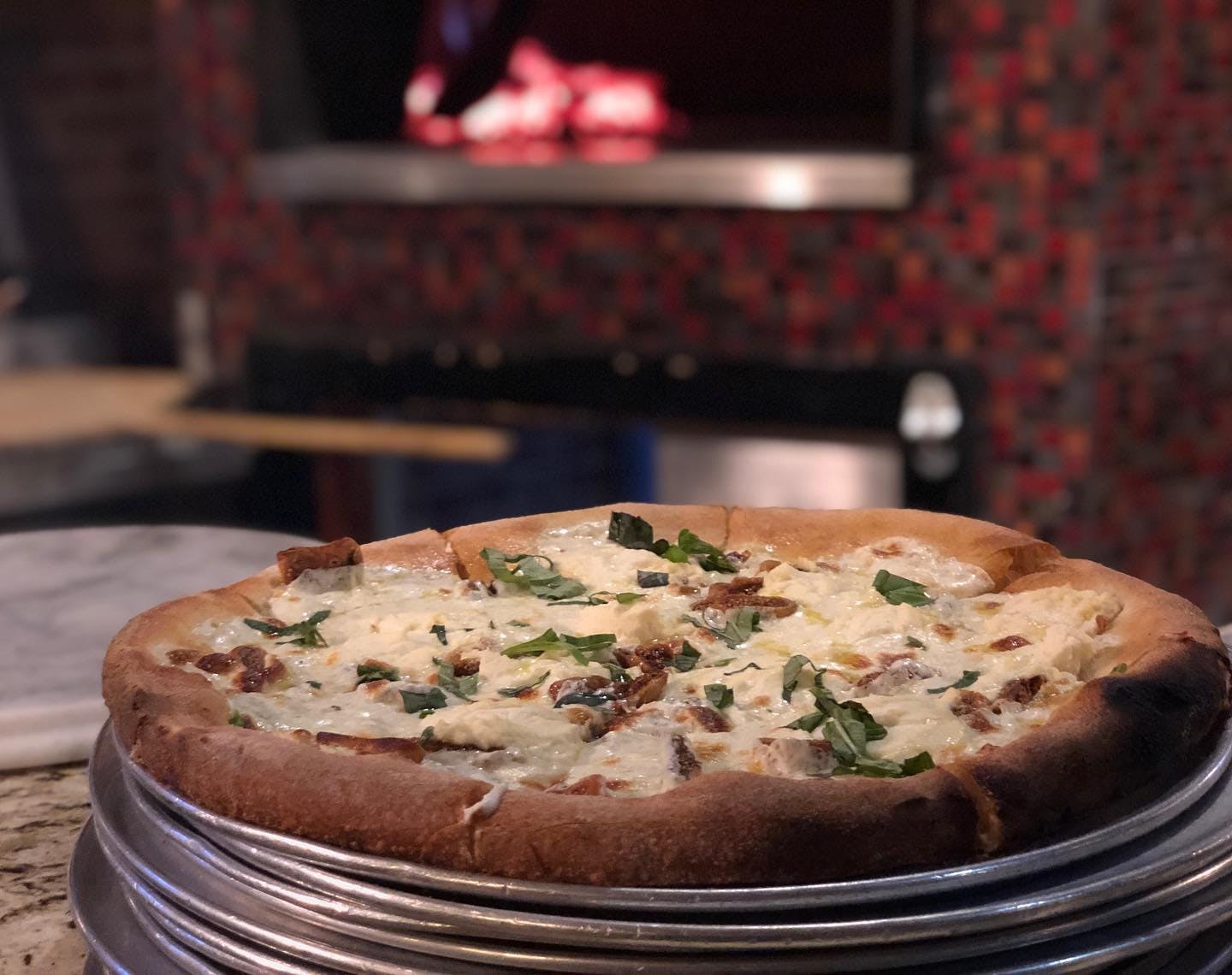 Fresh mozzarella, fontina, gorgonzola, parmigiana, garlic & fresh basil.
