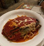 Veal scaloppine topped with fresh mozzarella cheese, eggplant, and prosciutto di Parma. .