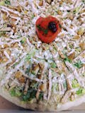Broccoli, spinach, mushrooms, sliced olives, mozzarella & sauce.