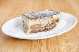 A delicious coffee-flavored Italian dessert. Ladyfingers dipped in coffee, layered with a whipped mixture of eggs, sugar & Mascarpone cheese, flavored with cocoa.