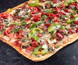 Organic Tomato Sauce, Pork Pepperoni, Pork Sausage, Peppers, Mozzarella