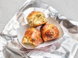 A classic snack, our garlic knots are strips of pizza dough tied in a knot, baked & then topped with melted butter, garlic & parsley.