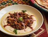 Sauteed Cuban of lamb meat, with onions, tomatoes served over hummus with homemade clay oven baked Yemeni bread and sahawiq.