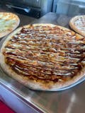 Red onions, three premium cheeses: (provolone, cheddar, pepper jack), a drizzle of cilantro, & some sparkling sweet bbq sauce.