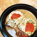 Fried breaded shrimp in a tomato sauce topped with mozzarella. Served with our choice of pasta or salad.