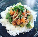 Sashimi-grade salmon marinated in our chef poke dressing, avocado, shallots, daikon sprouts, served over rice or salad.