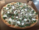 Fresh spinach leaves, artichoke hearts, grape tomatoes, cucumbers, olives, mushrooms & gorgonzola cheese.