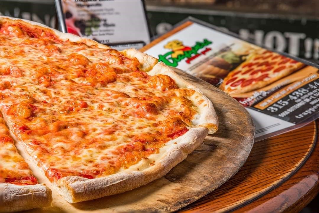 Mozzarella, homemade pizza sauce, parmesan, and oregano, cut into 8 slices