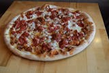 18" round pizza with a combination of sliced handcrafted meatball, crumbled, sweet Italian sausage, sliced pepperoni, grande mozzarella cheese...and a lot of love.