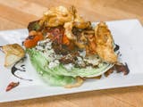 Iceberg, crumble blue cheese, bacon, tomato, crispy onion, balsamic reduction.