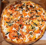 Thin Sicilian crust with homemade vodka sauce, fresh mozzarella and basil