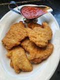 Breaded butterfly shrimp, topped with tomato sauce & mozzarella.