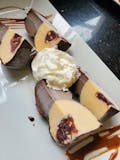 Battered eggplant topped with plum tomato sauce and mozzarella.