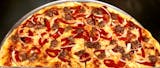 Sausage, pepperoni, homemade sauce, and mozzarella cheese.