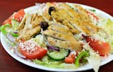 Grilled chicken breast marinated with balsamic, Organic mixed greens, plum tomatoes, cucumbers, carrots and red onions.