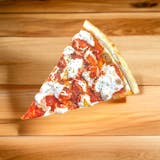 NY style with our homemade tomato sauce, imported pecorino romano, grande mozzarella, topped with fine sweet italian sausage, imported italian pepperoni, sauteed sliced onions, fresh roasted peppers, fresh mushrooms, finished with fresh basil.