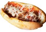 Meatballs placed on a 12” hero with marinara sauce, parmesan and melted mozzarella.