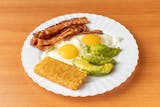 Eggs, ham, bacon, sausage and cheese. Served with home fries and choice of bread.
