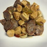 With sauteed broccoli rabe or spinach or broccoli. Served all day.